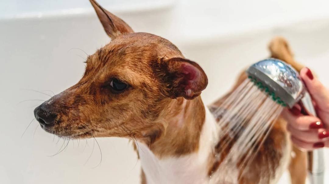 Use dog-specific shampoo and ensure the water temperature is comfortable. Rinse thoroughly to remove all soap residue.